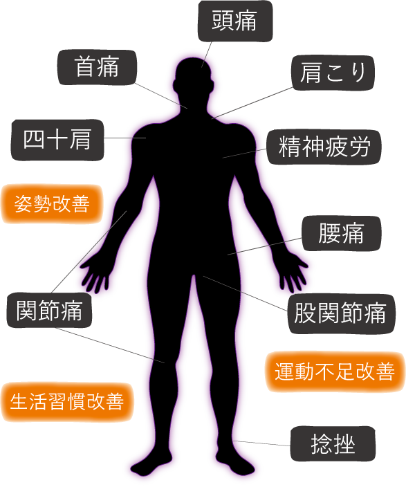 | 基本的にはどのような方でも施術を受けることが出来ます。特にコリからくる痛みや関節痛などには効果を発揮します。また身体が固くてお悩みの方や運動不足の方は、人の手によって筋肉や関節を強制的に動かしていくので運動したのと同じ状態となり新陳代謝アップにも繋がり、普段の生活においてキツかった動きも楽になっていきます。 |